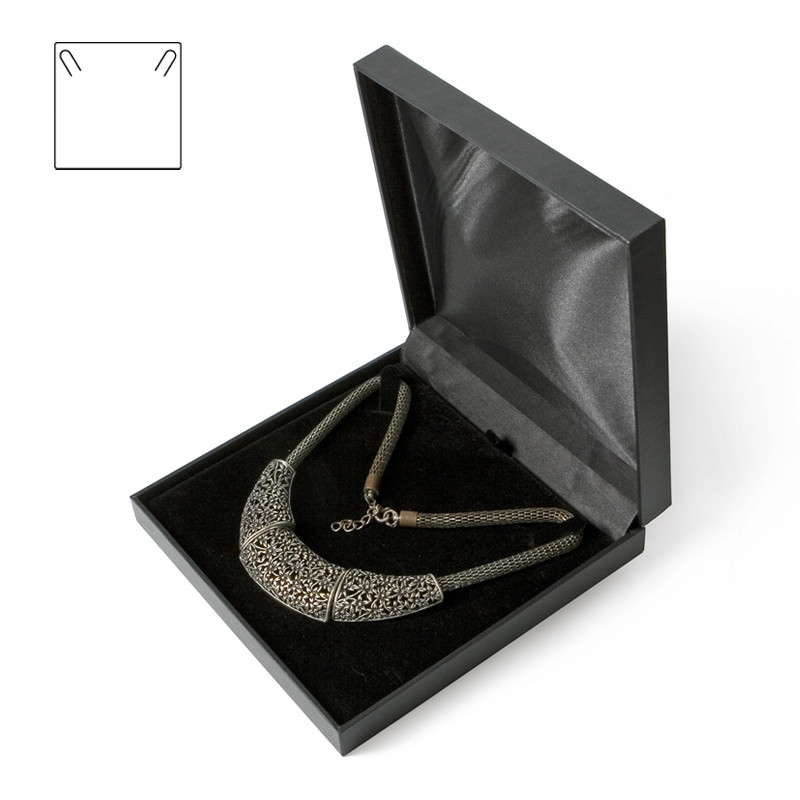 Estuche forrado con símil piel de textura lisa, en color negro mate.