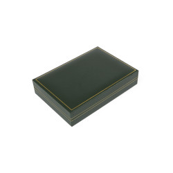 Estuche forrado con material imitación a piel.