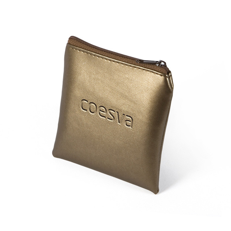 Bolsa de polipiel para joyería, con cierre de cremallera y forro interior.