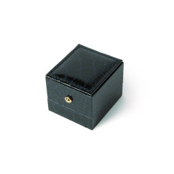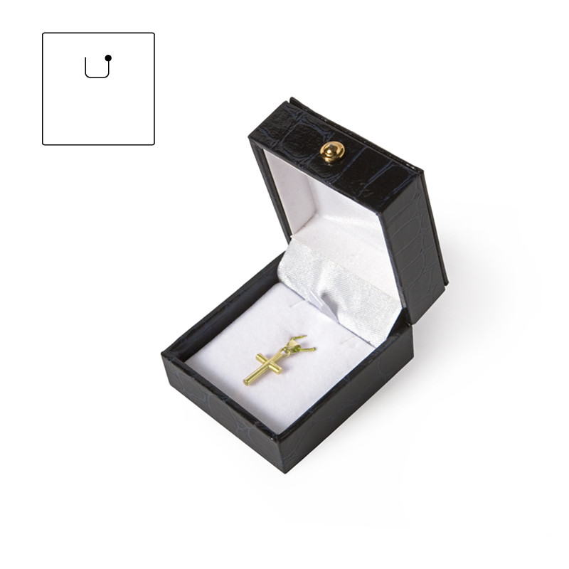 Estuche forrado imitación a piel de cocodrilo, con pespunte decorativo en la parte superior de la tapa.