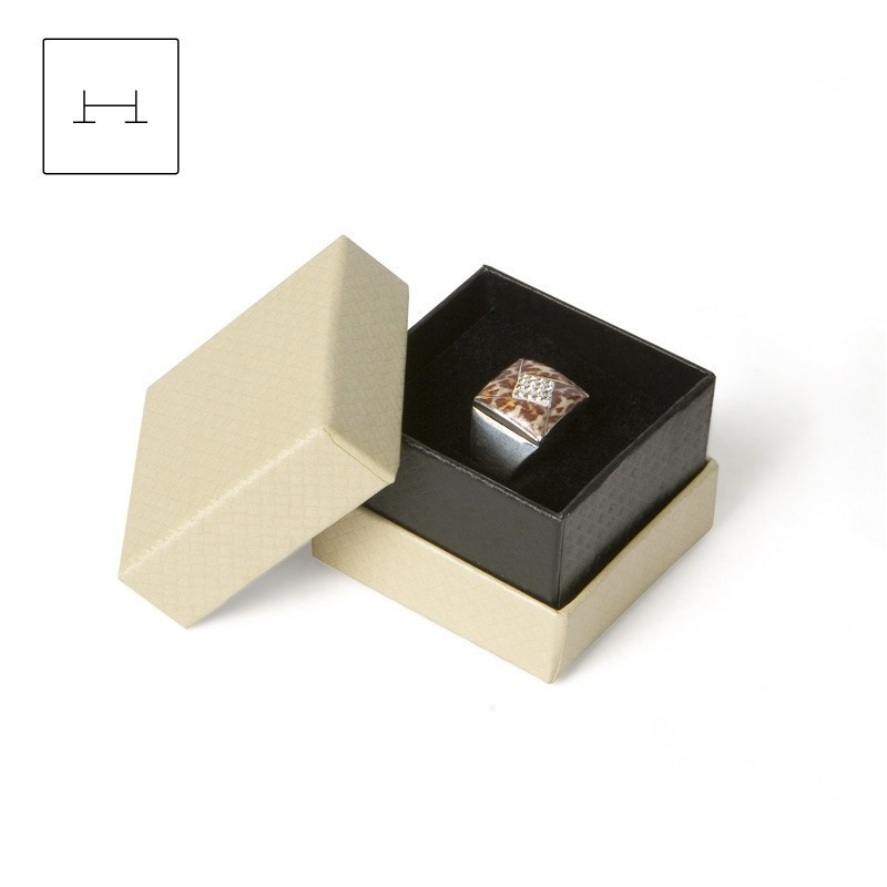 Caja de cartón forrada.